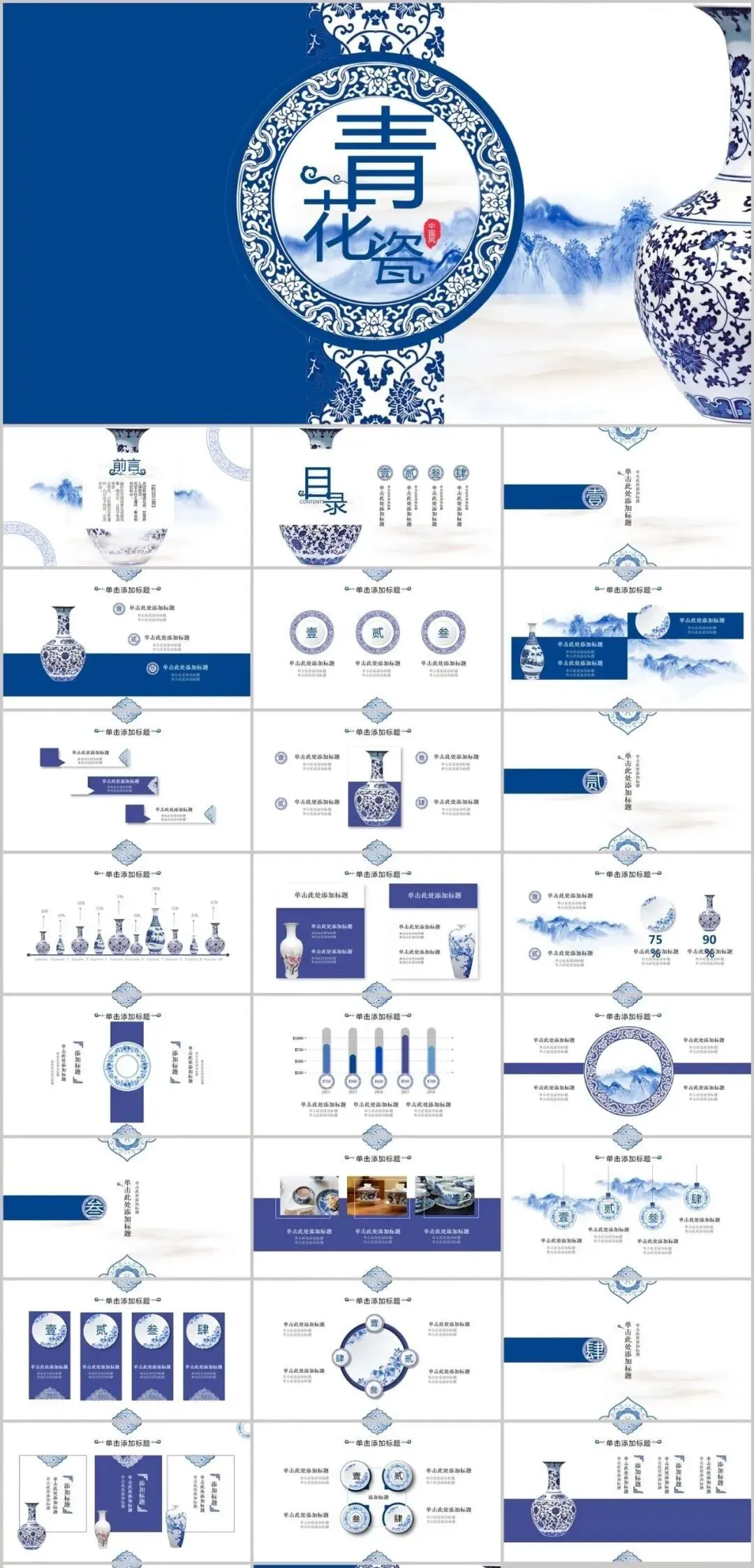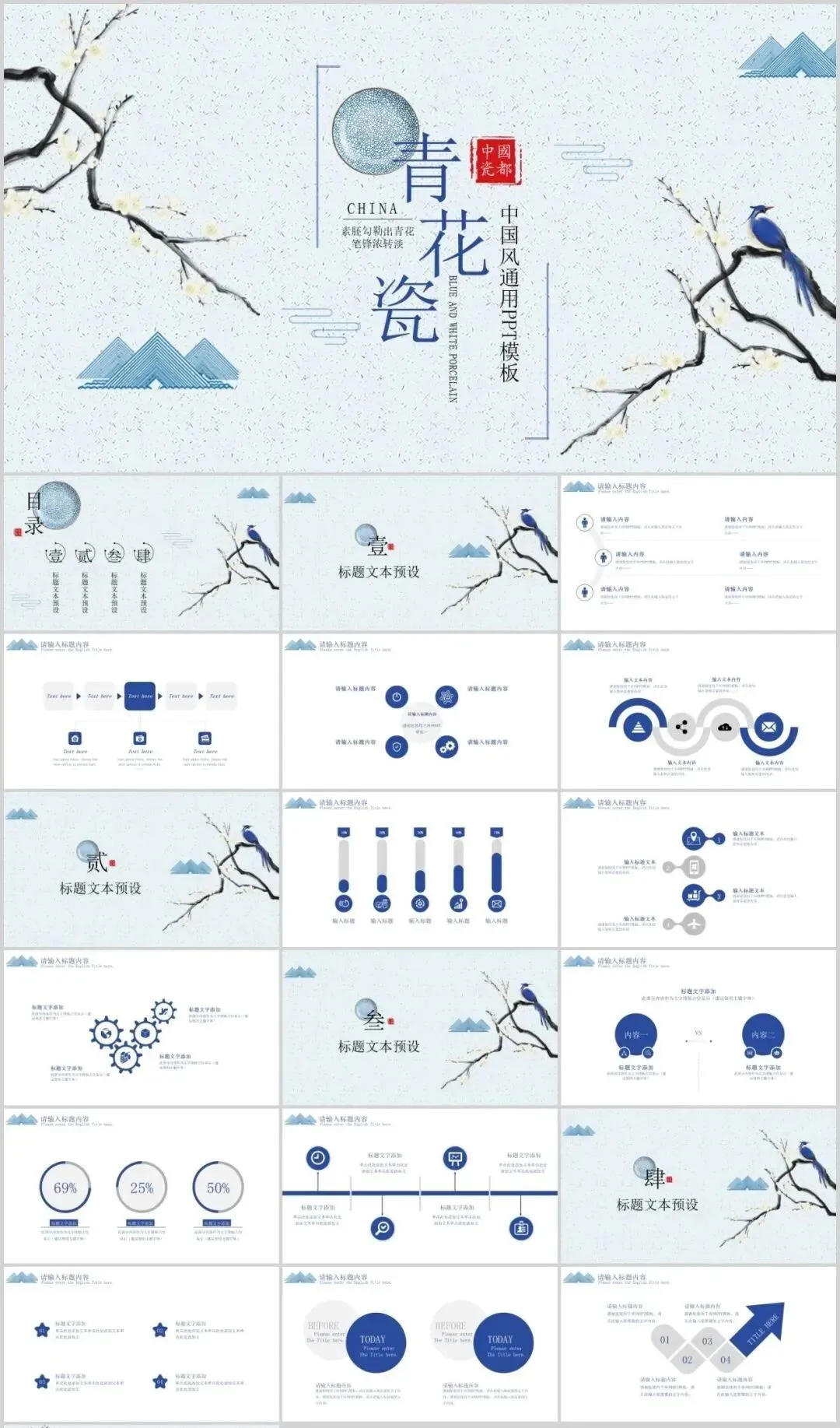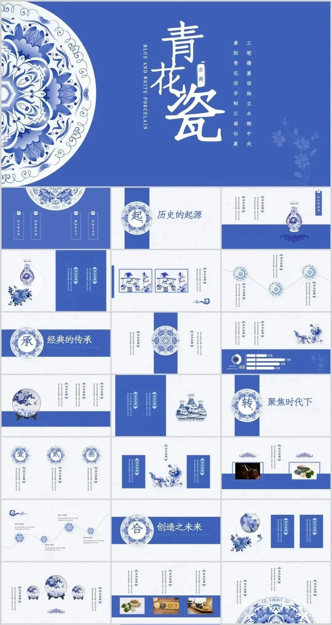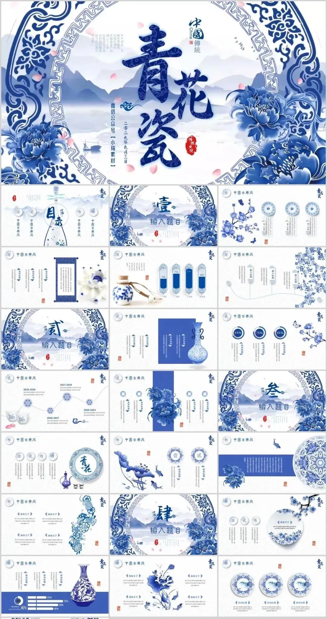 今天给你带来的是37套青花瓷主题的PPT模板。