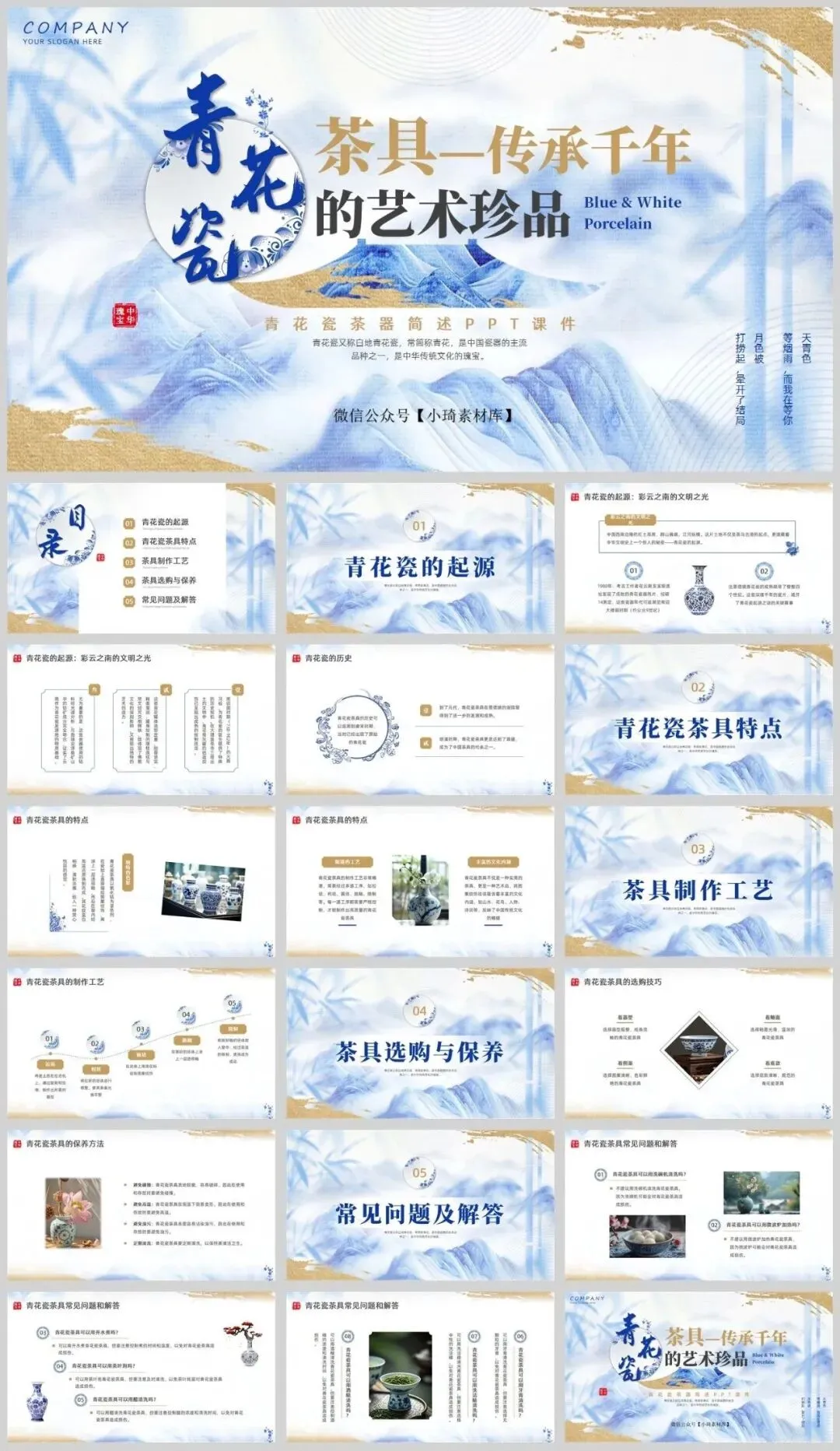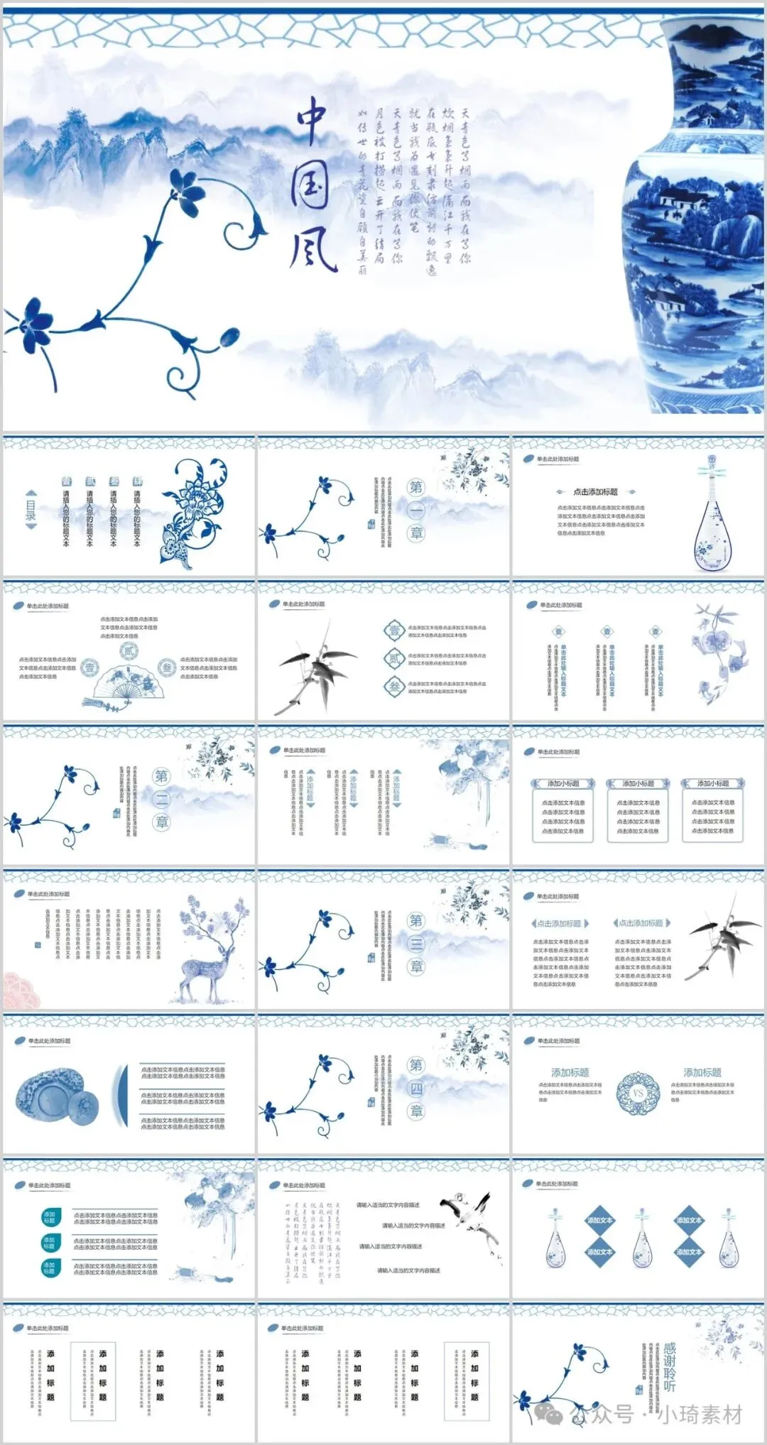 之前小琦有整理过超级受欢迎的扎染风格PPT模板,这一次,小琦带来了青花瓷主题PPT。