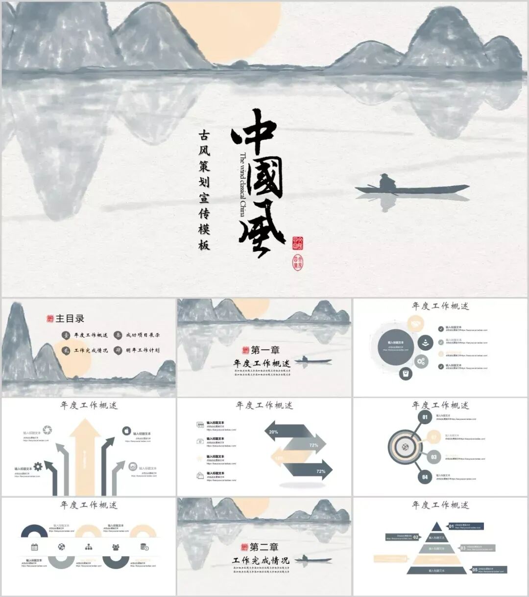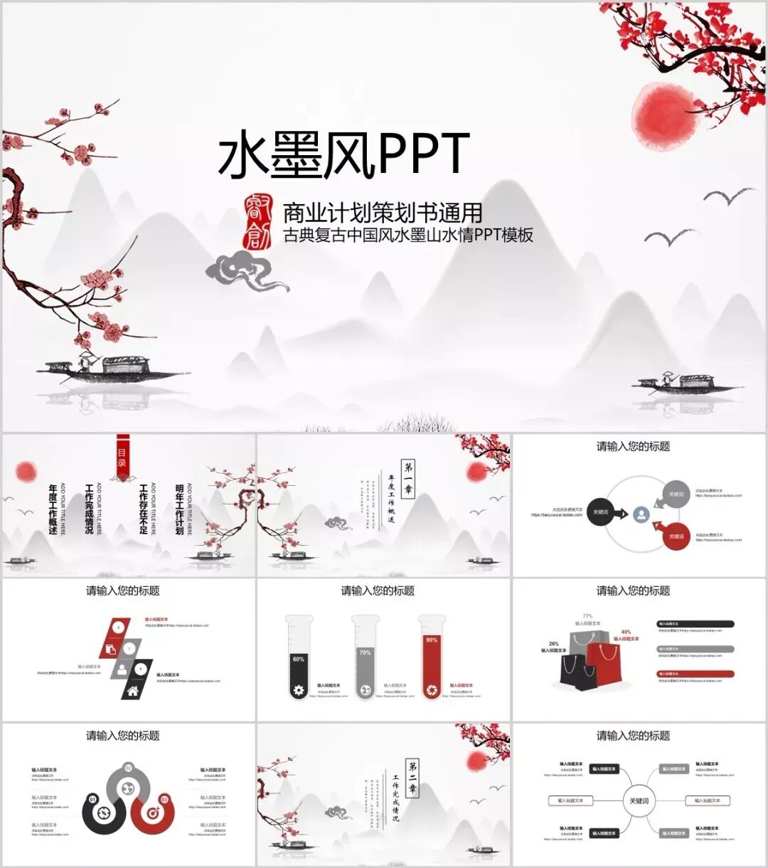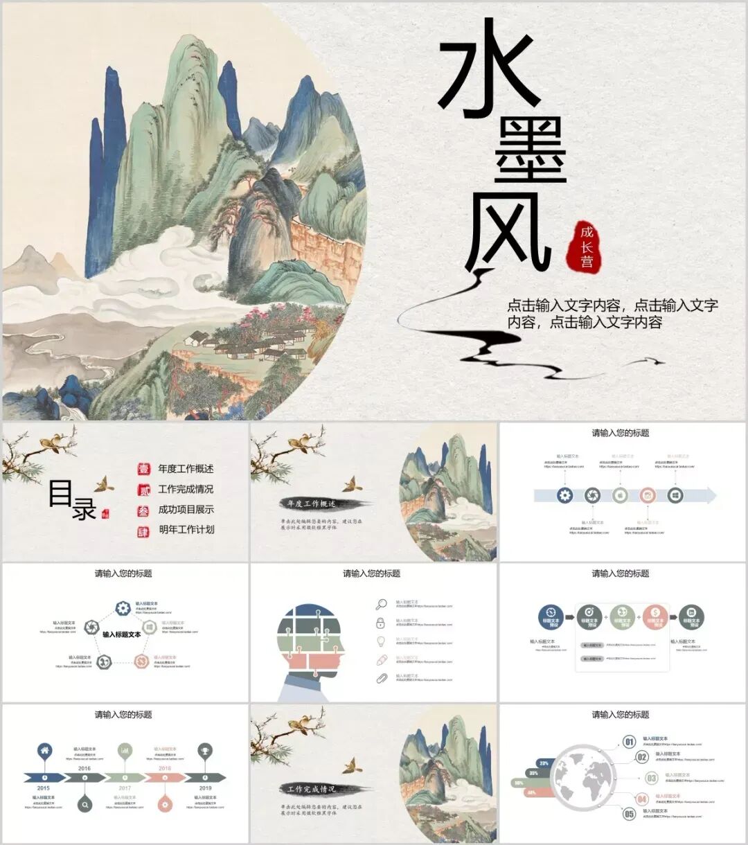 水墨风的PPT就是由水墨画组成的,由此可见它的魅力。