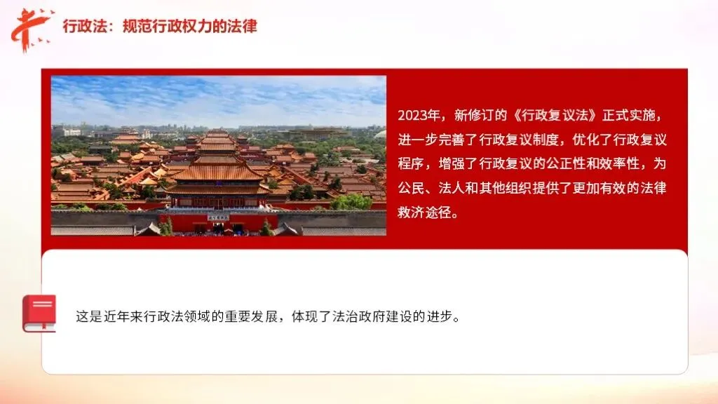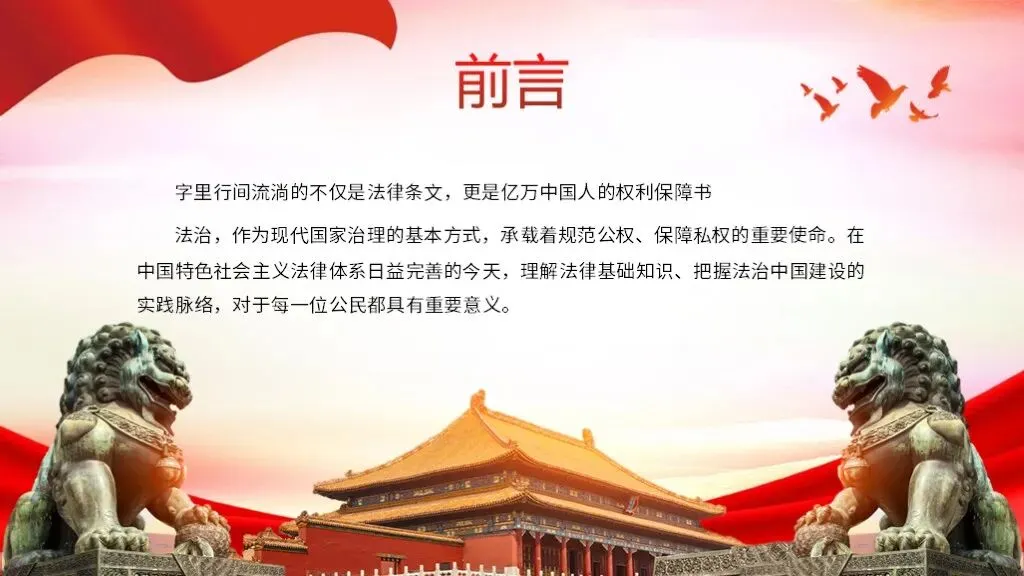 法律不仅是冷冰冰的条文,更是亿万公民权利的坚实屏障。这份题为“学习法律基础知识·法治中国建设实践”的PPT,以系统化的框架和生动的案例,为我们揭开了法治中国的多维面貌。从宪法作为根本大法的崇高地位,到行政法对公权力的规范约束;从民商法对平等主体关系的细致调整,到刑法对犯罪行为的精准惩治,内容层层递进,既涵盖法律体系的基本构成,又深入法治实践的创新探索。尤为值得一提的是,PPT通过“终本智管”“四层五环节调解”等典型案例,展现了基层法治改革的智慧与实效。结尾部分,作者以“法治兴则民族兴”的宏大视角,展望了法治建设与国家现代化的内在关联。这份材料不仅是知识的梳理,更是一次对法治精神的深刻呼唤,值得每一位关心社会进步的读者细读。