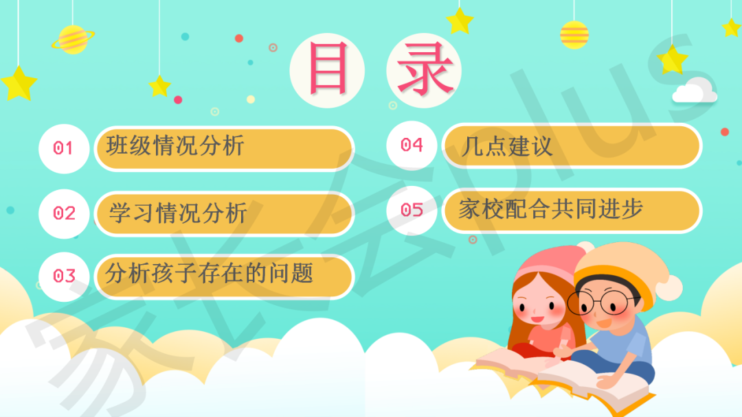下面是这份小学五年级家长会 PPT 课件模板 08 的预览,总共有 19 页。