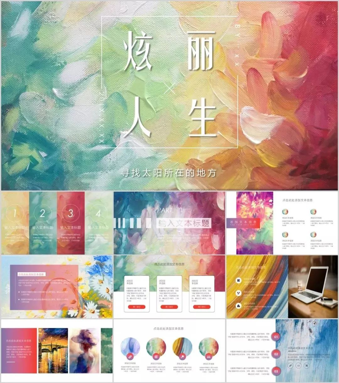 因为油画色泽夺目,颜色富有张力,很容易吸引他人注意,所以将油画元素融入到PPT中,可以迅速吸引他人眼球 ,让你的演示文稿与众不同。