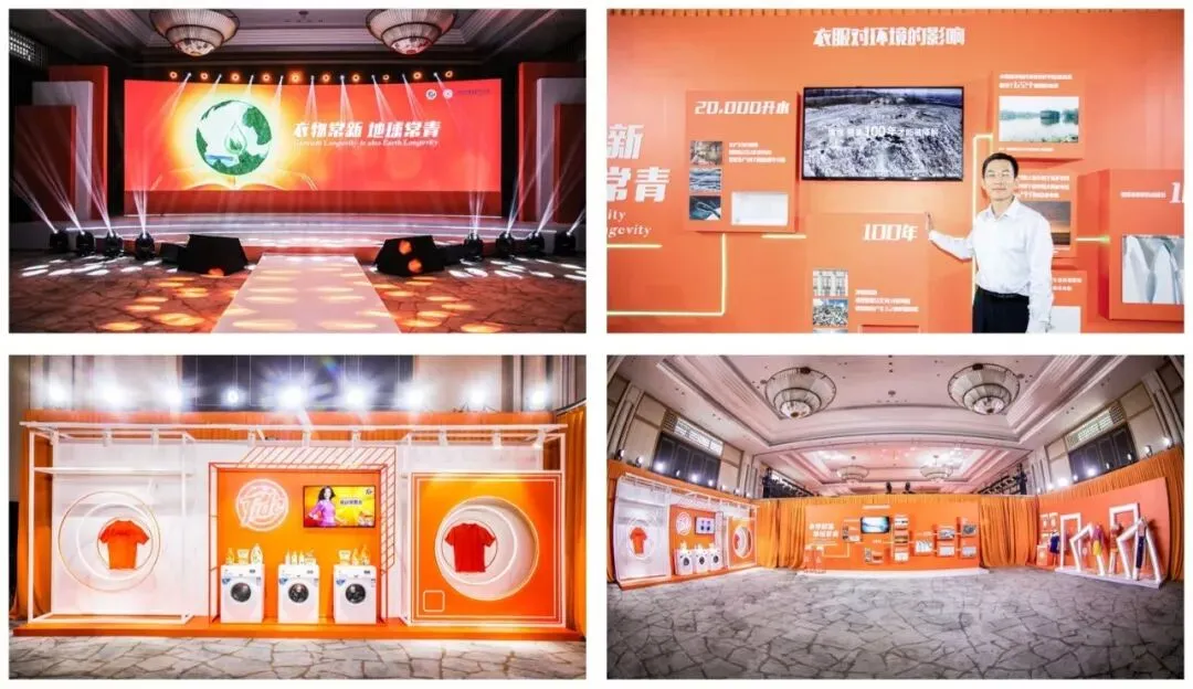 做幻灯片设计,不能仅仅把视角只放在幻灯片这个局部,要充分考虑整个现场的空间看到全局,要注意幻灯片这个「点」与场地环境这个「面」之间的关系。场地中屏幕的高度,如果位置比较高,则做PPT的设计排版时不会有太多顾忌;但如果幕布较低,就要考虑演示者、前排观众可能会挡住一部分画面,那PPT上的内容就要尽量集中在中上位置。我们在承接汰渍发布会PPT定制设计的时候,前期经过沟通,了解到本次不仅仅是发布会,还配有展厅、产品、时装秀……所以我们提前要到场地图、展览设计图,包括整个活动中的流程。可以看出,整个会场的布置,非常注重品牌色的运用和识别性,所以幻灯片的设计,也就需要考虑幻灯片与整个会场空间的统一性、匹配度。你会发现这些都「宛如一体」,这个就是幻灯片与会场环境的「匹配度」。所以,好的演示设计,不要只盯着「一张PPT」,而是要看到「一个空间」。