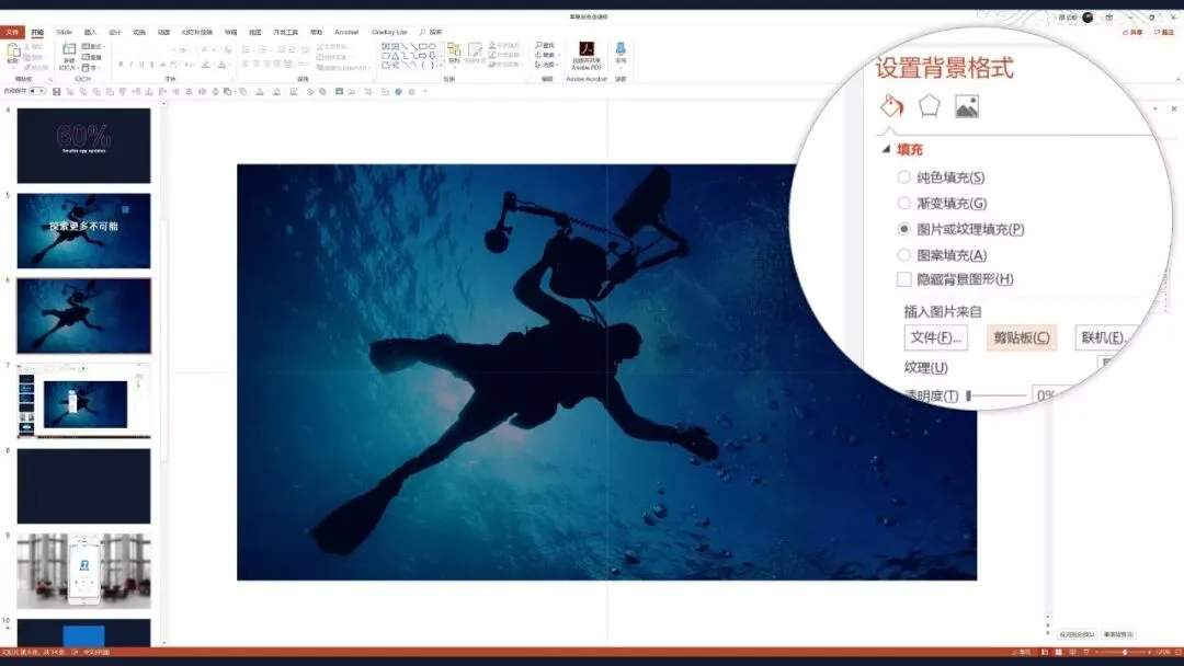 那这个切口的效果是怎么做的呢?很简单,我们只需要用到PPT中的一个基础功能,叫做幻灯片背景填充。
