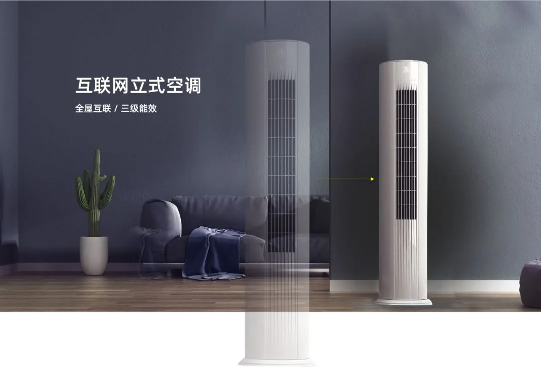 比如我们想要介绍一款空调产品,就可以先以大图的形式对其展现,然后,将其放在房间中的某个特定位置,就可以使用这个组合动画: