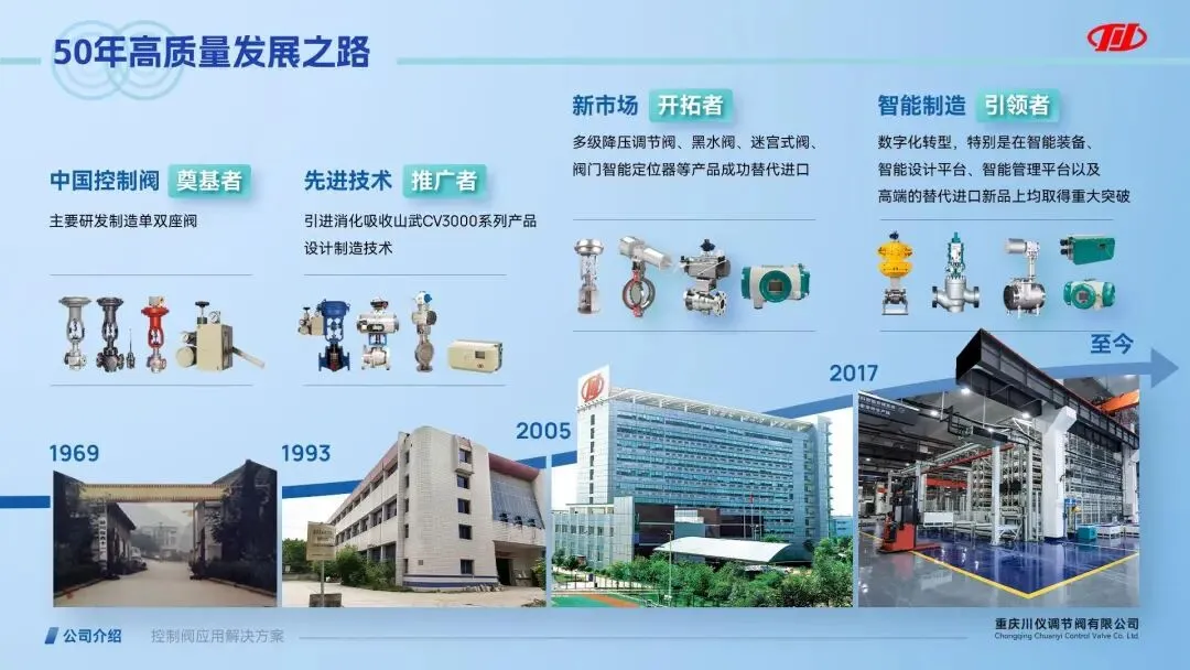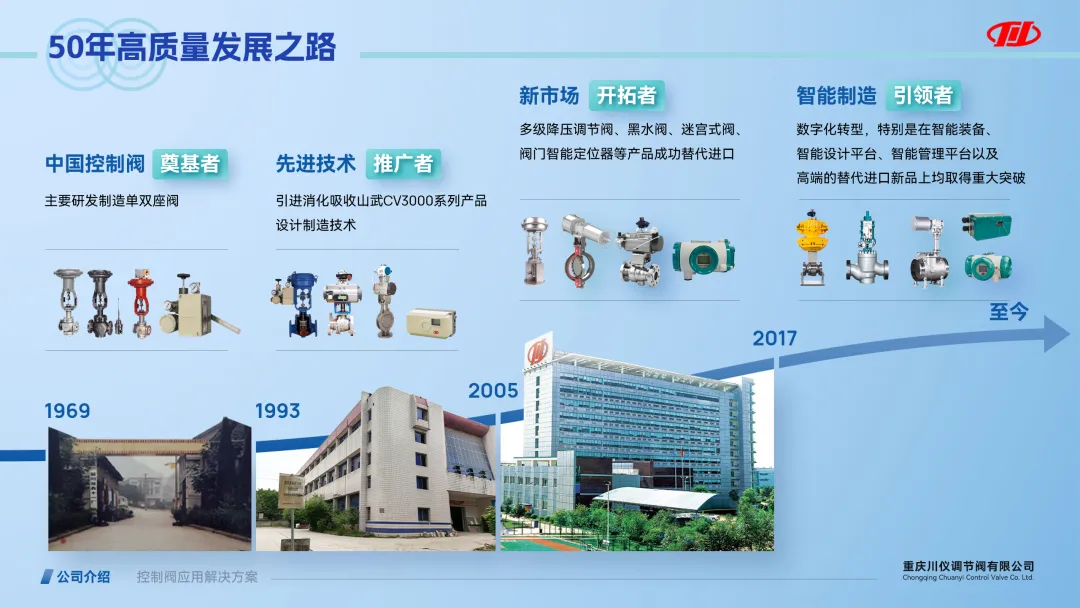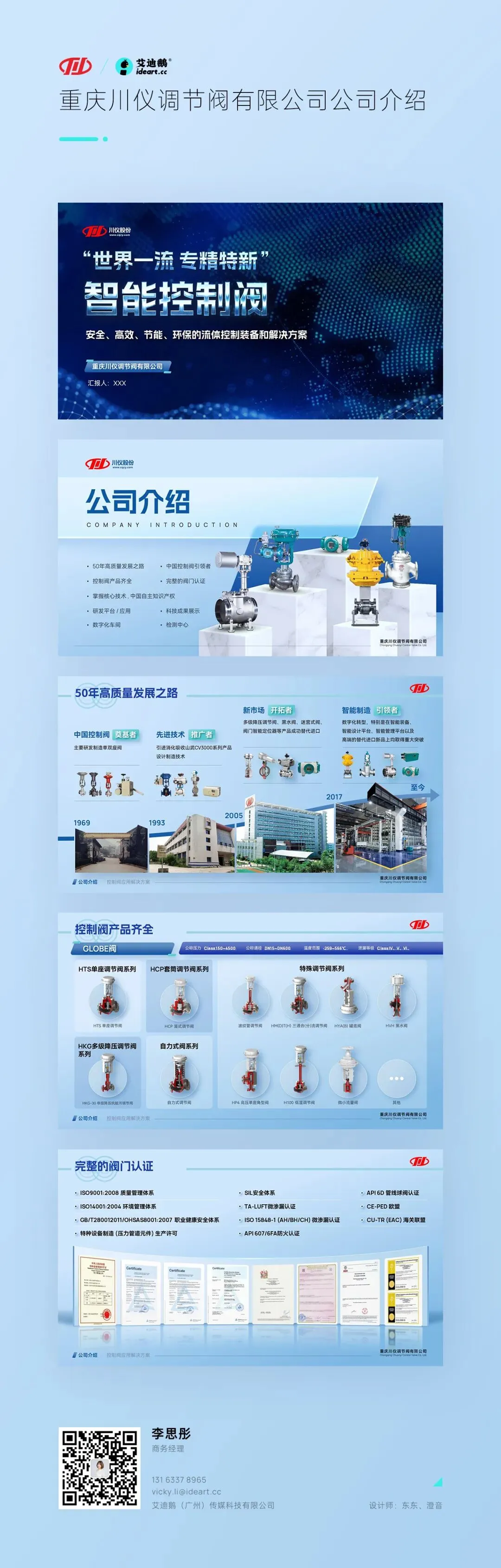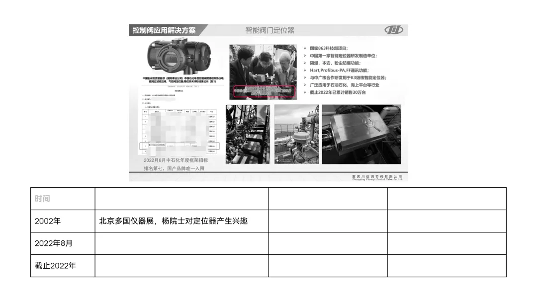 好久不见,这期的《幕后》,我们回到一个企业介绍PPT项目。企业介绍,一直是演示定制中的一个大品类。这类项目不同于短平快的比赛型、演讲型PPT,完整的流程往往比较漫长,甚至设计开始前就有着不少的其他工作。企业介绍类的PPT,制作的是一家企业的对外名片,客户往往非常注重稿件是否为针对性的「定制」,而非套路化、模板化的处理。本期,我们就从一个相对简单的企业介绍项目入手,聊聊体现「定制化」的3个基本要求。这个项目的客户是一家阀门产品相关的公司,一方面想展现自身的一流、专业,另一方面也要有身为国企“正规军”的正式感。有时候其实没那么复杂,问问客户有没有他们自己的“总公司”“母公司”等的一些设计对标。一开始我们并没有询问客户是否有总公司的设计需要对标。于是根据客户本身所在专业领域的感觉做出了设计。实际上,最后的定稿设计,风格说不上有点相似,起码也是毫无关系。所以第一眼看过去,会有一些无法理解的地方。比如为何背景会有比较明显的色彩,标题栏为何有那个双圆圈的图形。问题来了。啥都照着“总公司”的来,那还要咱们设计什么。其实我们可以把这次项目的设计划分成两个部分。一部分“传承已有的”,另一部分“发扬自己的”。整个logo图形可以看做用平行四边形配合圆弧线构成了【川】【仪】两个字。那么我们就可以从中提取出本次设计会用到的核心图形:圆角平行四边形为了增加设计细节,我们可以模仿logo的图形组合方式,为圆角平行四边形添加细节:得到的这个图形组合,就是个非常不错的小标题容器,应用在页面的各个位置。需要注意,这样的图形因为存在倾斜,无法存放多排文字,在使用的量上需要一定克制。只要能够让人注意到有这么一个图形,并和logo的形态联系起来,我们的设计目的也就达到了。确定了风格,我们可以开始正文内容的设计。这次不聊太多,我们就看一个实战中经常遇到的也让很多小伙伴头疼的页面类型——超多内容页。原稿的这一页几乎被图片和文字铺得满满当当。面对这种页,很多小伙伴也会望而止步。对着内容看半天也想不出什么点子。➊ 首先,从页面中寻找最容易找到的内容。比如:时间、地点、金额、称号……例如这次我们去找最容易找到的时间,讲这些词填入表格第一列。➋ 接着,我们对应第一行的时间,填入属于这个时间的内容原稿中还有一部分内容没有填入表格,在梳理时可以单独进行一次处理:以上面梳理完成页面作为“半成品”,就可以着手页面设计。比如可以先把“时间轴”表格部分完成:页面本身倒也没有用太多高难度设计手法,像这样内容比较满的页面,按照整理好的逻辑,基本都能比较好满足客户需求。这一页也是项目后续多次修改反馈中没有改过的页面。当然,表格法梳理内容,答案并不唯一。这只是第一列填写时间关键词得到的最终结果。不同的人会有不同的填法。比如有点小伙伴可能会在第一列填入“人物、单位”,并以此扩充表格:这个表格相较于前一个内容梳理表格,空的格子更多,如果这个梳理逻辑被客户认可,那么可以辅助我们向客户询问是否有内容补充,以完善页面内容:当然,这个梳理方案没有用上,因为当我们把第一个表格的内容设计完成后,客户就直接让这一页过稿了。而如果以第二个表格梳理出的内容进行页面设计,可能又是另一种页面了。最后是我们经常谈到的设计细节。这些很难被看到,但是有和没有对最后的成品又存在比较大的影响。若是不太想重新想一个排版,可以直接把图宽度补起来。如今,AI工具也是十分好用。加上图片在页面也比较小,简单用AI扩个图,不需要太精细,就可以满足设计要求:也有一些AI处理不了的。比如这张图,原图的图、文混杂一起,不好处理。但是最后一张图有点犯难了,因为图片的顶部没有明显的边缘线,不太好处理难道直接顶上一刀切?前面三张图片都有穿插式的设计,第四张这里总感觉少了点什么。其实可以动动脑筋,顶上的部分,我们画一个“横截面”不就行了