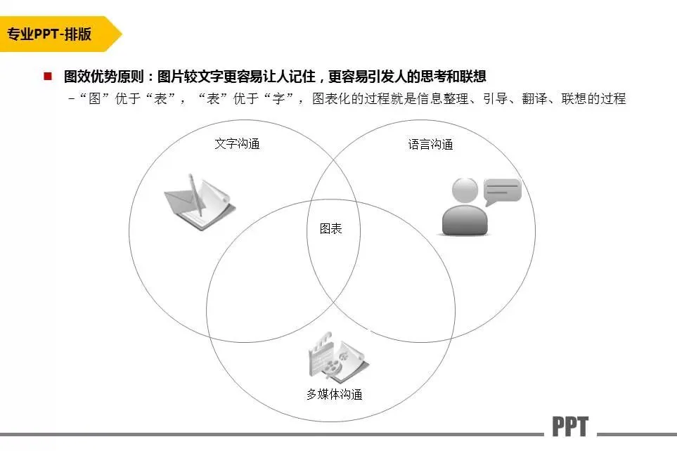 图片较文字更容易让人记住,更容易引发人的思考和联想。“图”优于“表”,“表”优于“字”,图表化的过程就是信息整理、引导、翻译、联想的过程。