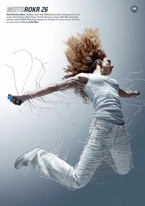 意境留白在现代平面广告设计中的应用更多。比如摩托罗拉的广告。