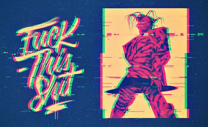 利用图像错位、扭曲、变形形成视觉故障的视觉效果,这种风格年轻、个性、多变,适合激情、科技感、动感强烈的设计中,彰显个性视觉传达。