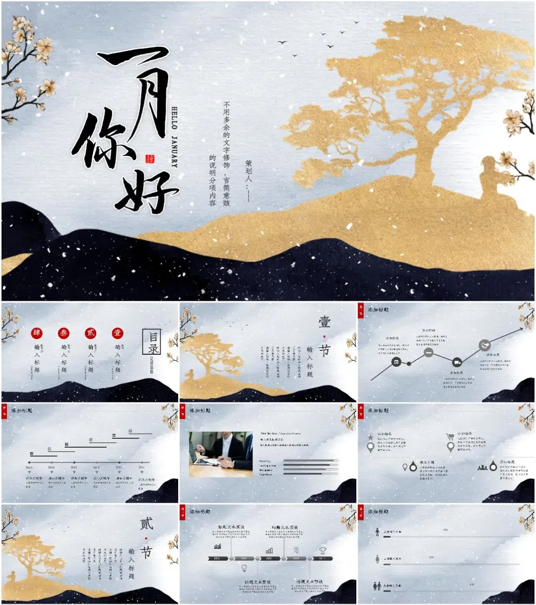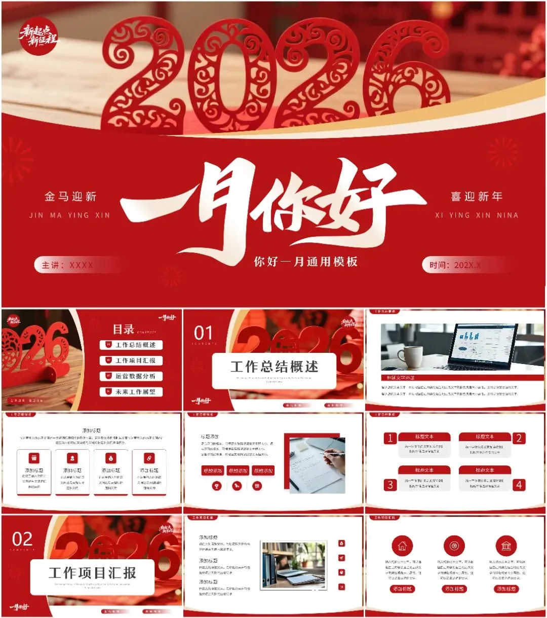 大家好,我是鱼主任,今天给大家带来最新16套高质量你好,1月专题PPT模板!