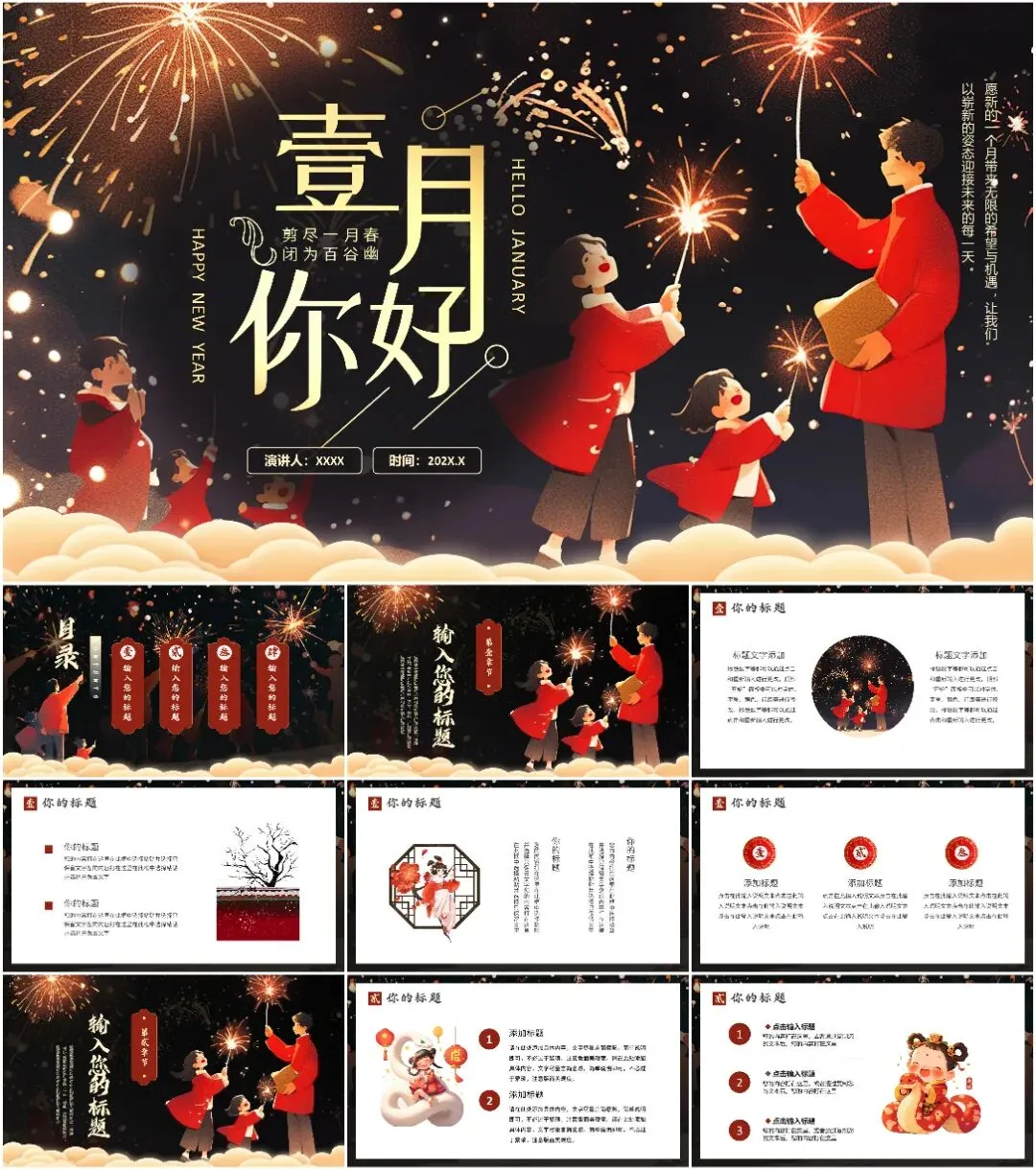 本次带来的模板适用于你好,1月等相关的场合!(下载方式在文章末尾)