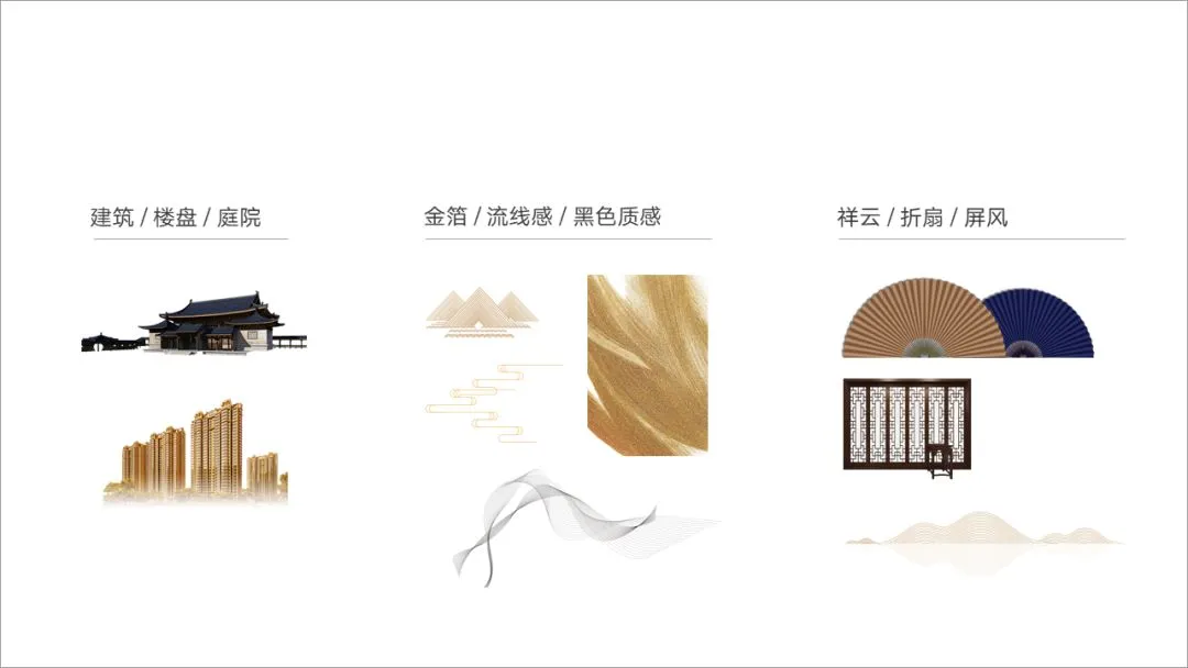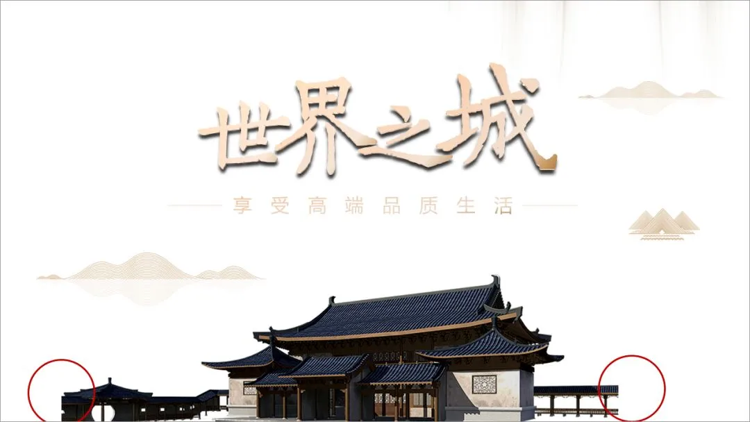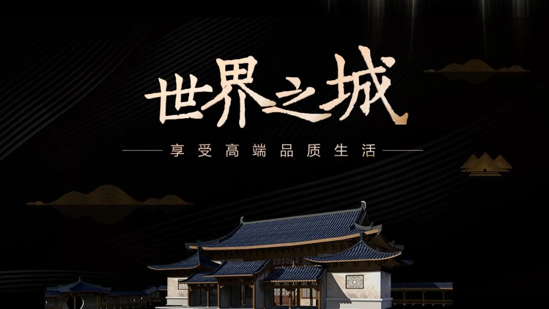 这是中式建筑,所以选了仿古字体,另外,色彩选用黑金,表现出高端。
