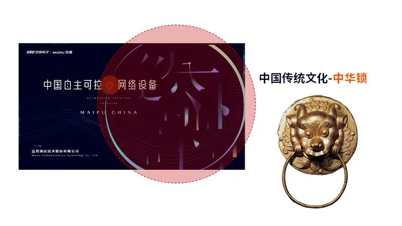 ❶选取迈普字中文部分笔触形体作为修饰以突显“新中式”的概念;