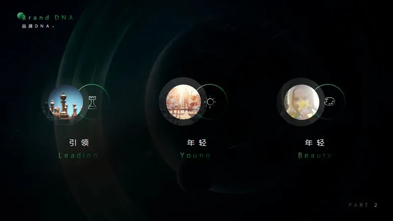 前景文字部分并没有使用纯色品牌色而是根据大环境针对品牌绿色加以渐变提亮装饰,类似于打高光。