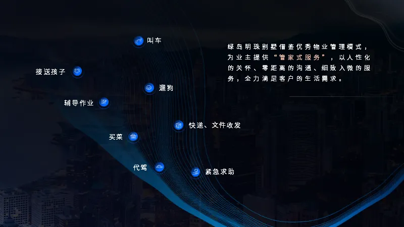 封面主视觉的建筑是用PPT图形制作而成,通过建筑主体提升视觉吸引力、品牌调性;搭配微动效,让人眼前一亮。