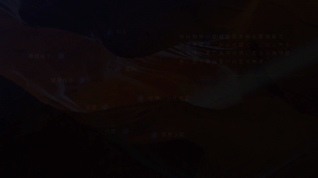 结合客户需求,我们设计采用深色背景+排版简约,在页面营造大气、高级的质感。再加上微动效,用律动的元素体现页面的灵活性,同时又能隐隐象征建筑的生命力。