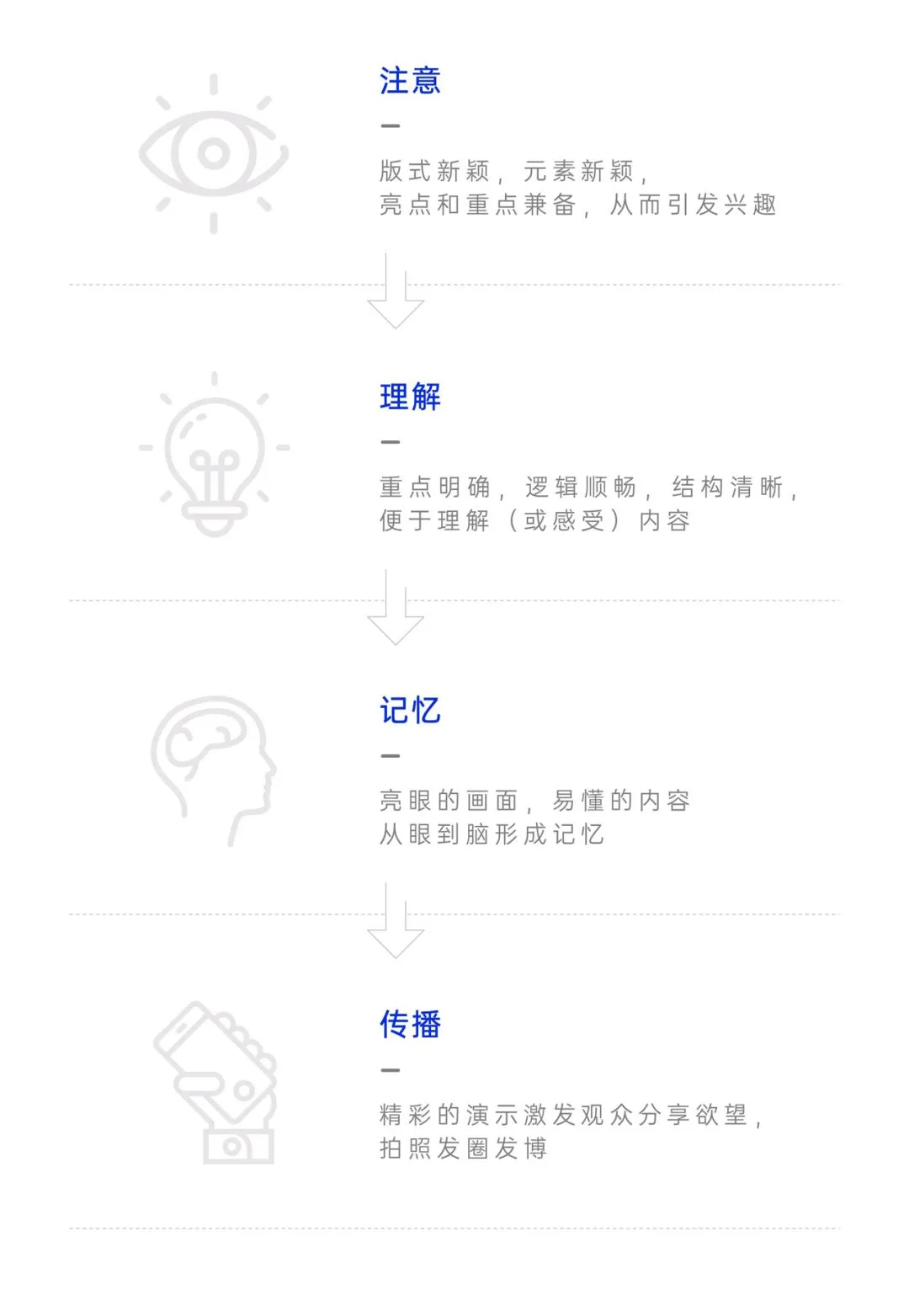 而这,恰恰是每一位演示受众的行为次序,也是每一张大会现场照片传播开来时所发生的故事。