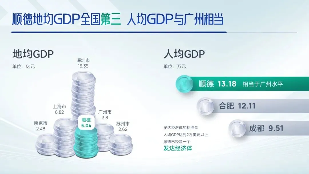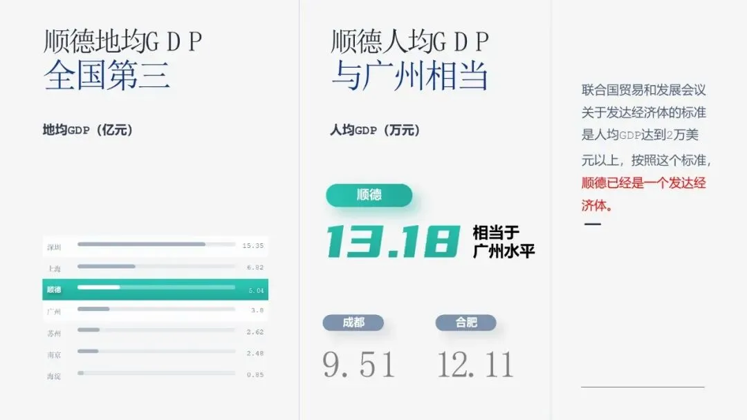 会,本页是在讲述顺德的GDP水平,包含地均和人均两个维度