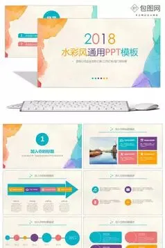 彩色水彩风通用PPT模版