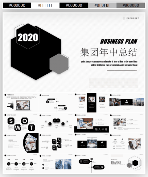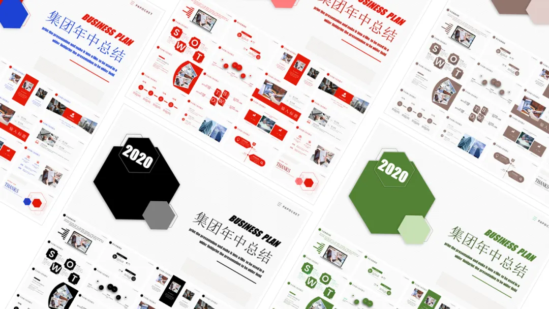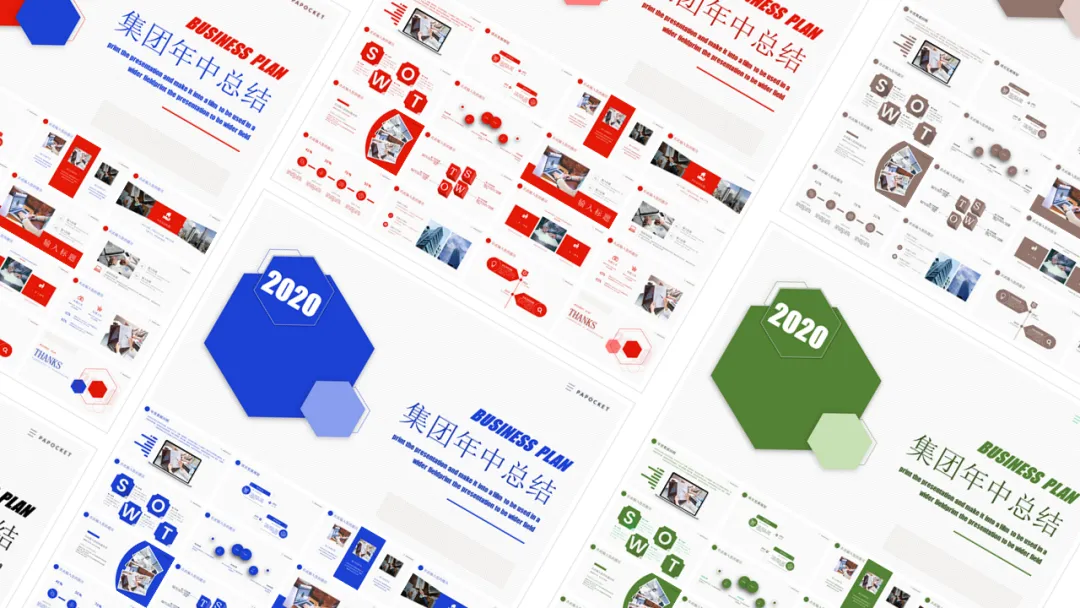 即可领PPT年中总结主题色源文件43份