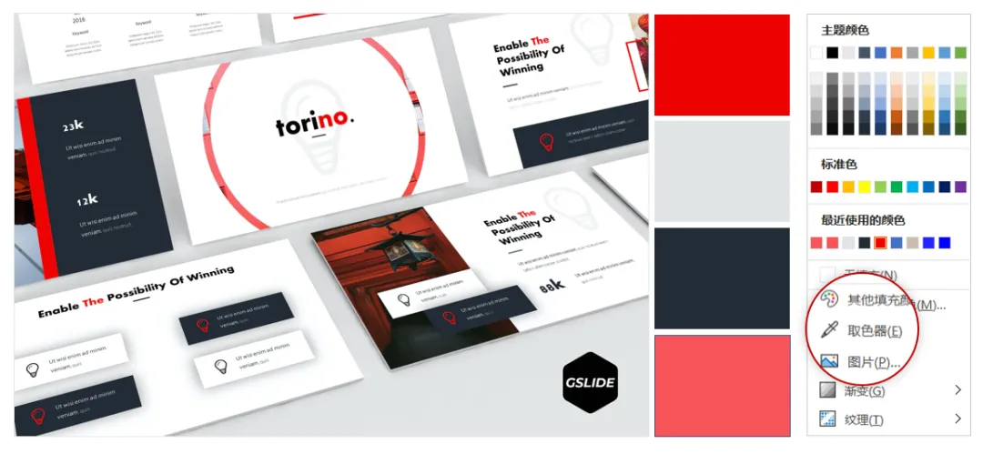 (2)智能识别:内容主题色智能转为PPT主题色