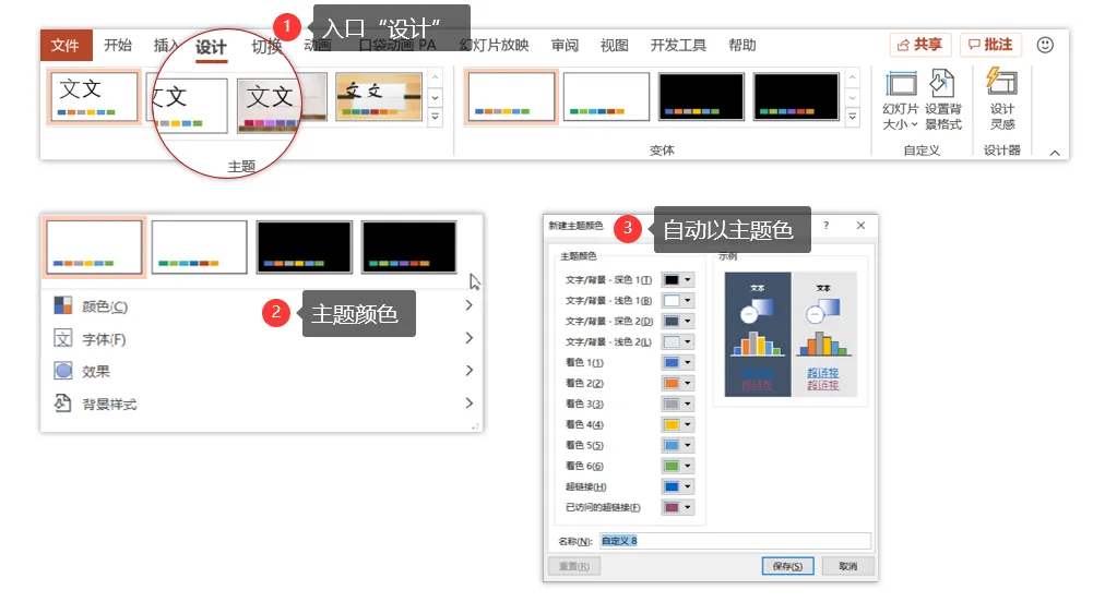 主题色是一种更高级的文档颜配色能力,基于这种形式,不仅可以将我们的PPT设计赋予更多的专业性,还能一键切换、快速应用,也期待你可以真正的将颜色运用起来。