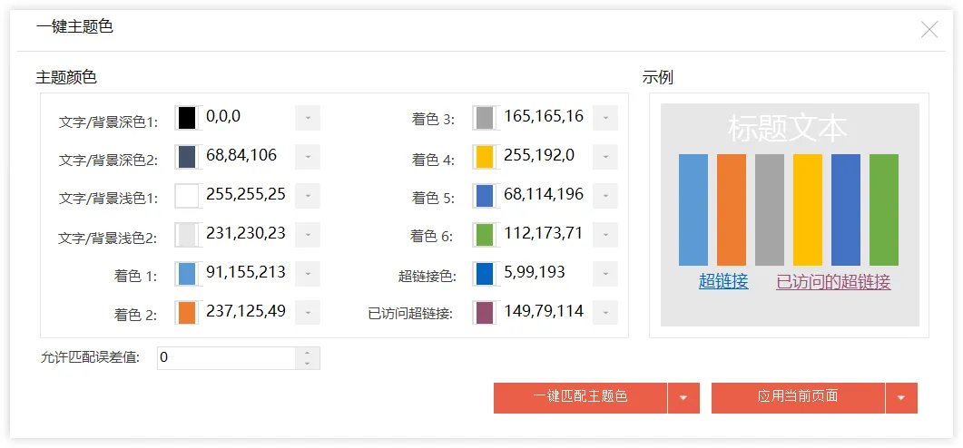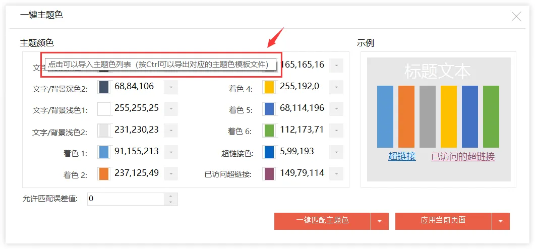 支持xlsx主题色列表一键导入。