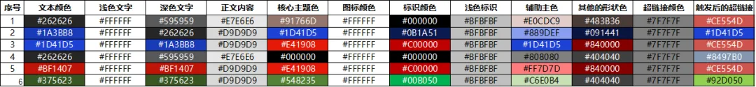 什么是主题色呢,就是针对一份文档或者PPT设计,为了保证内容视觉的统一性、规范性而定义的一组颜色序列。不同的文档内容和展示诉求,我们往往会为之设计出对应的颜色风格,即称之为文档主题色。