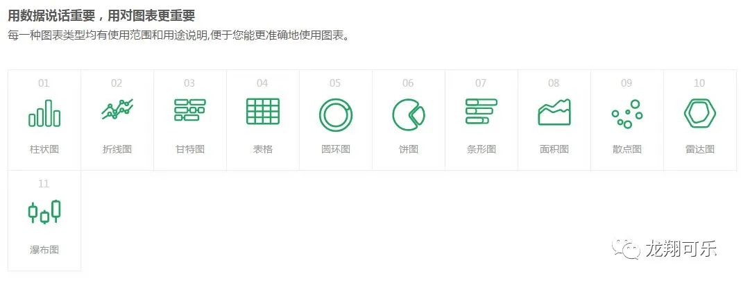 数据的图表化是PPT中最常用的内容形式化方式。每种图形都有不同的适用领域,可以根据需要选择合适的表现形式。