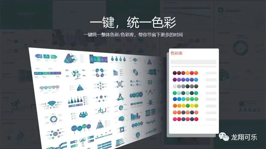 iSlide的第二个重要功能就是相对规范化的智能模板系统。和大多数的PPT模板网站相似,iSlide可以根据主题提供相似的PPT模板。不同的地方在于,选择模板时可以进一步根据主题、色彩、图示三种主要设计元素进行搭配,“创造”出你想要的风格模板。