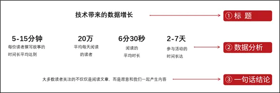 标题+数据分析+一句话结论,三部分内容在逻辑上是总分总的关系。