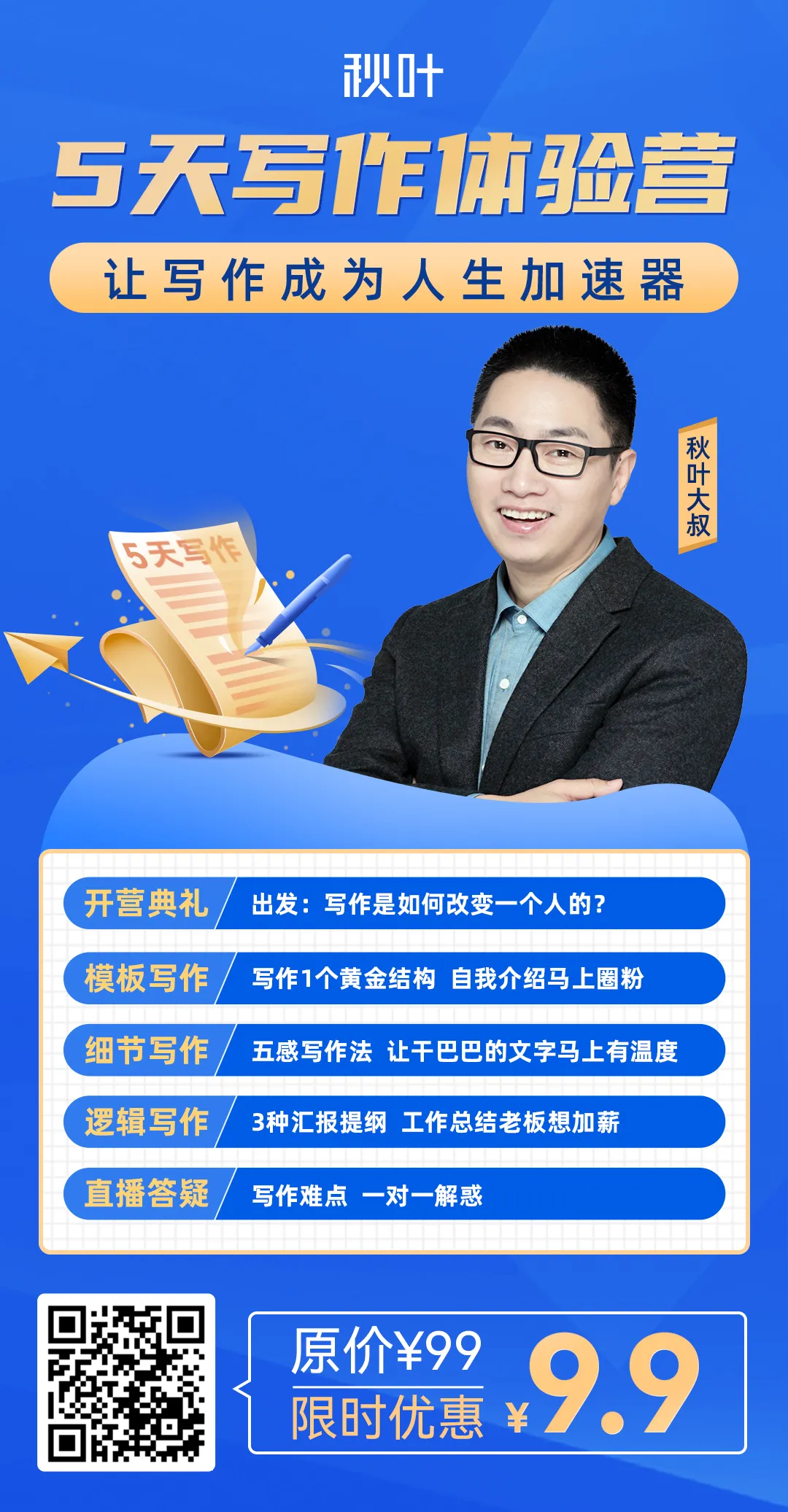 如果有用,希望你能点下右下角的「在看」小小支持和鼓励一下哦~著名商业咨询顾问刘润老师曾经做过一个预测,未来最危险的行业一定是那些和机器人抢饭碗的,我们要学习一门不那么容易被替代的技能,比如写作。我推荐大家参加【秋叶写作体验营】,7 天时间,你将学到文案创作、工作汇报、AI 写作工具等实用技巧,还有机会发展成能变现的副业。为感谢一直以来各位小伙伴的支持,秋叶 PPT 开设读者群啦!欢迎大家扫描下方二维码加入哦!群内不仅有海量 Office 资料包,还有各种职场干货分享、红包掉落等福利~