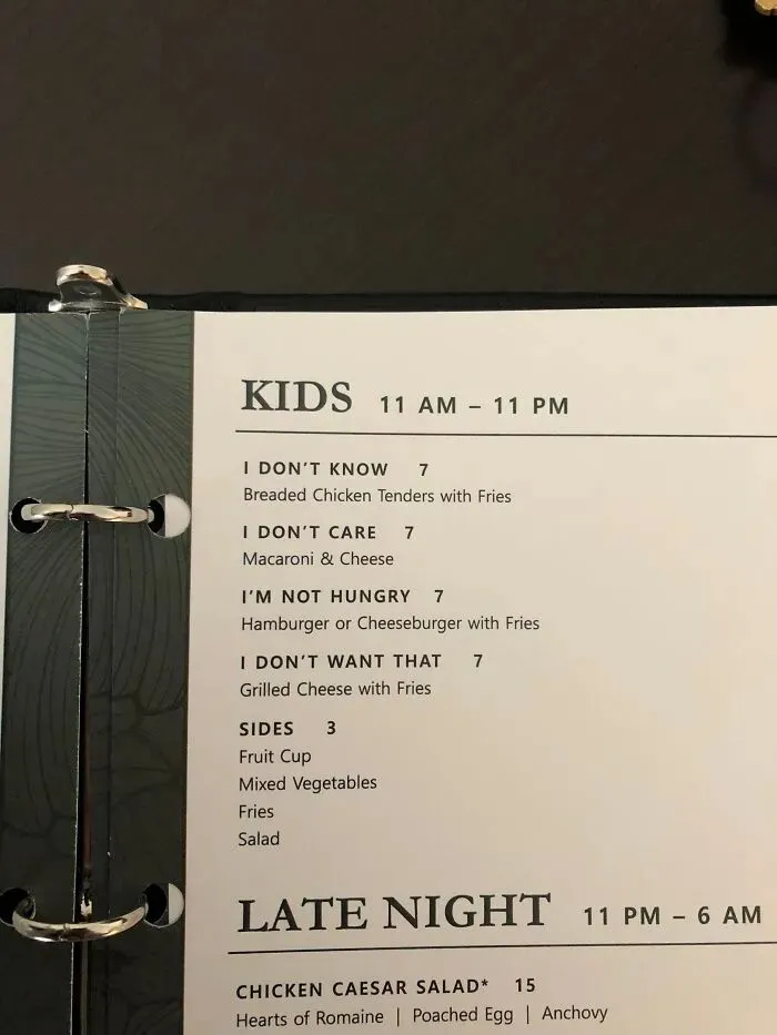 “酒店的客房服务菜单上有一整页的宠物食物。”