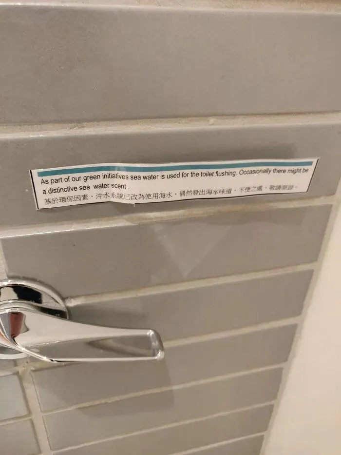 “酒店卫生间的冲水系统已经改为使用海水。”