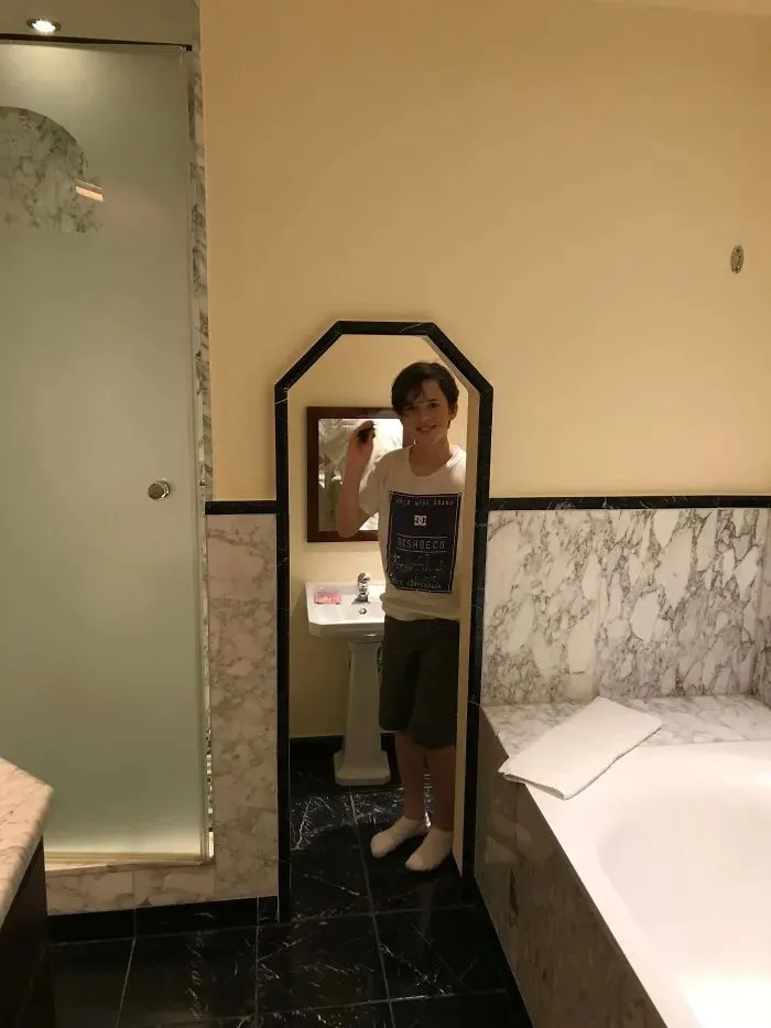 “我们曾入住德国的欧罗巴公园酒店,浴室里有一个很小的儿童浴室。”