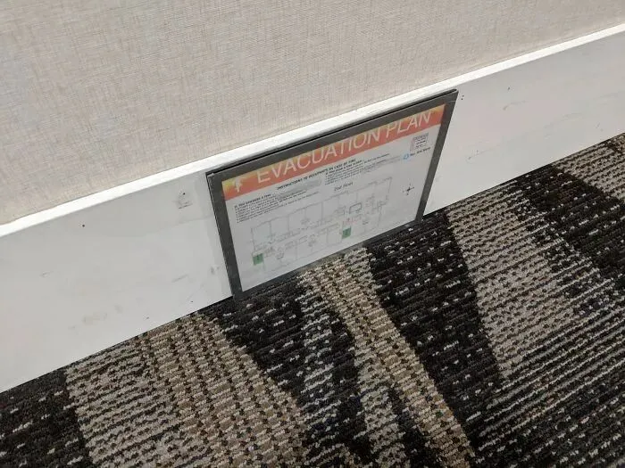 “我住在的酒店将消防疏散计划贴在了靠近地面的地方。因此如果真的发生火灾,烟雾弥漫整个走廊,人们趴下时就可以看到它。”