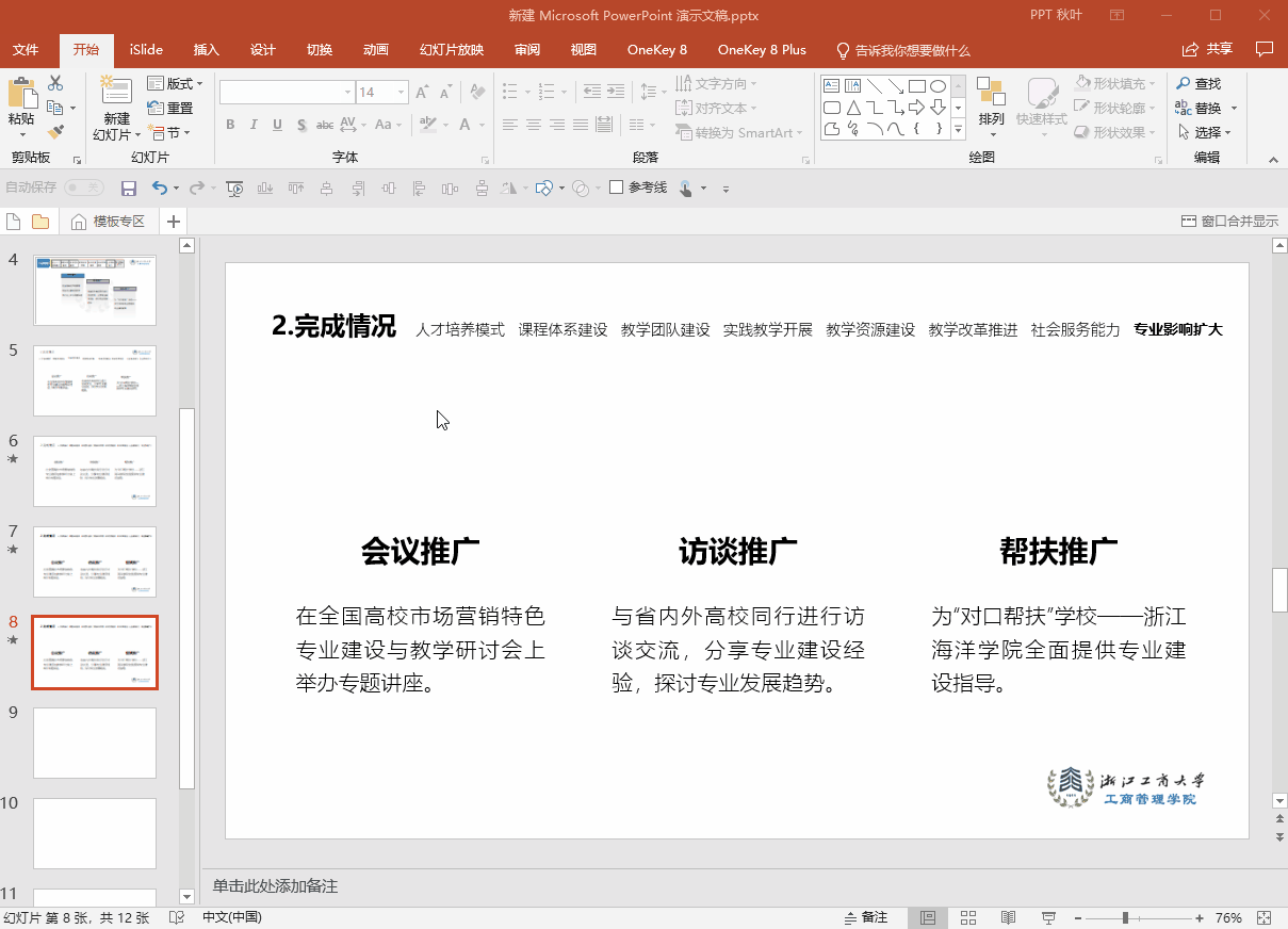 我们把大标题「完成情况」、三个「推广」以及导航栏中的「专业营销扩大」的小标题字体进行加粗,并且适当放大处理:
