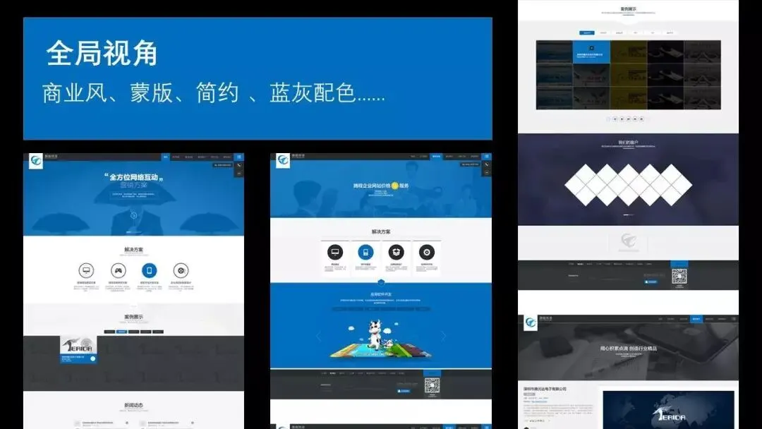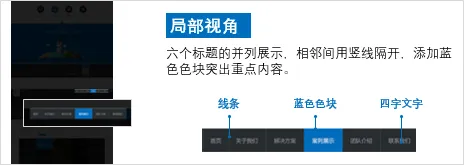 我们通过全局视角去看这个网页的整体,就会发现它是商务风的、蒙版的、简约的……