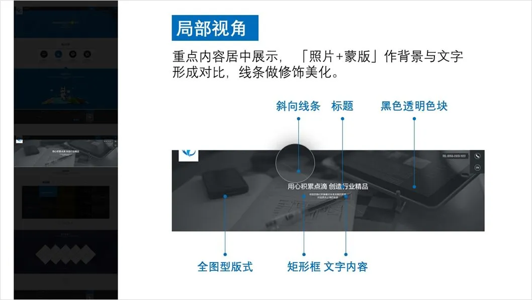 首先,利用「拆解思维」分析这个视角的设计,通过版式、配色、照片、字体等的处理发现每一处设计都是充满商务风的特点。