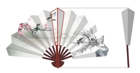 仔细看,折扇中包含了很多重复形状,组成折扇的基本形状实际上是由三部分组成:两个对称的不规则四边形和一个矩形。