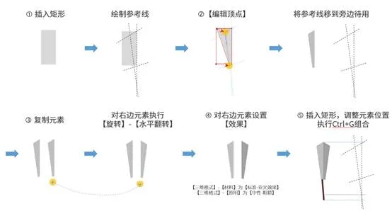 这一步主要涉及插入形状、编辑顶点、旋转以及调整效果的操作。