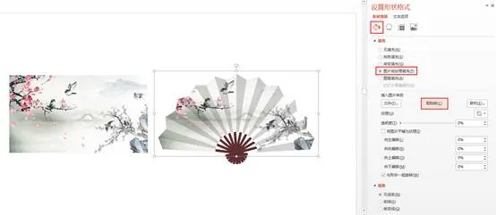 ❸ 复制图片,点击扇面形状,选择【填充】为【图片或纹理填充】,点击【剪贴板】。此时有立体感的折扇就完成啦~