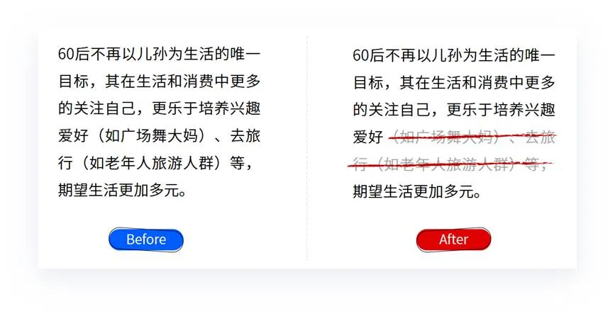 举例子的文字可以被精简,如下图中的「如广场舞大妈」。