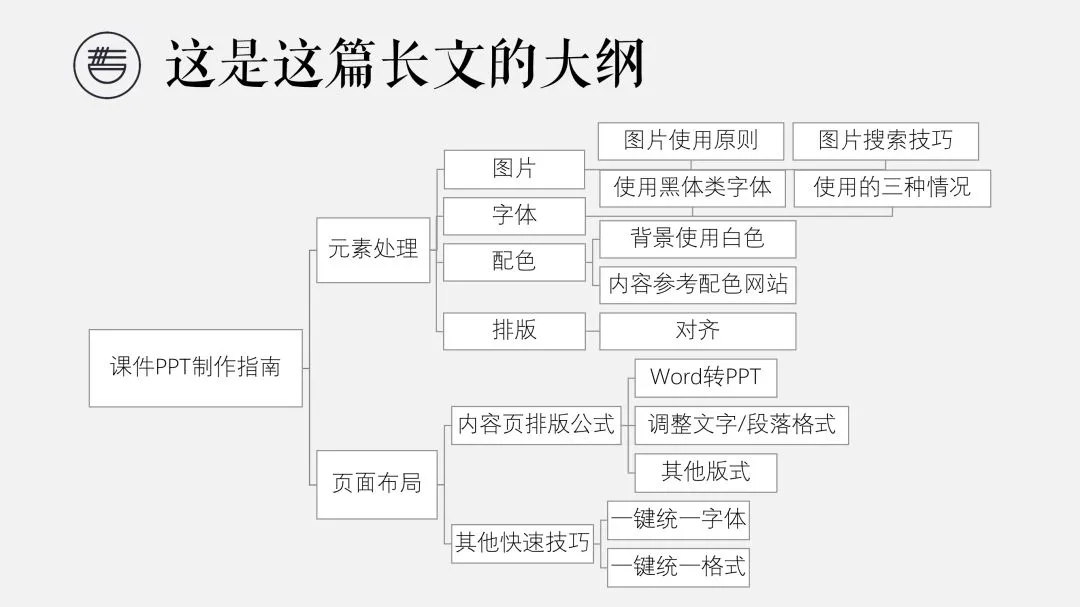 以上就是三顿要给大家分享的全部内容了,关于课件PPT的制作,这可能是目前最实用的一份指南了。放上内容大纲,一起再回顾一下吧: