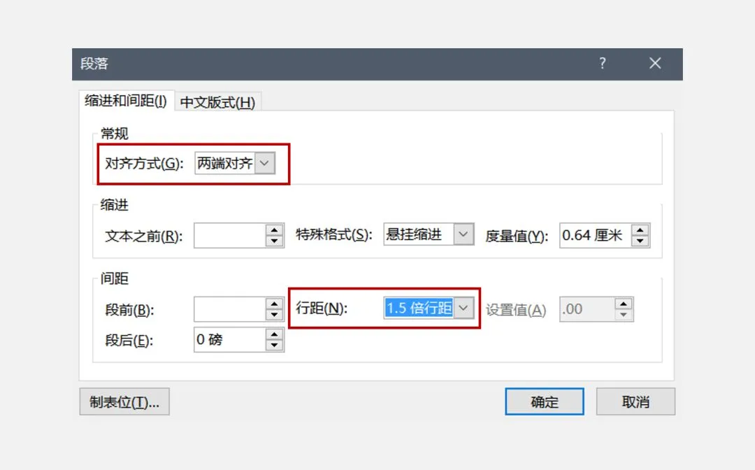 接下来调整段落格式,记住对齐方式和行距这两个关键的选项。将段落设置为两端对齐,以及1.5倍行距。