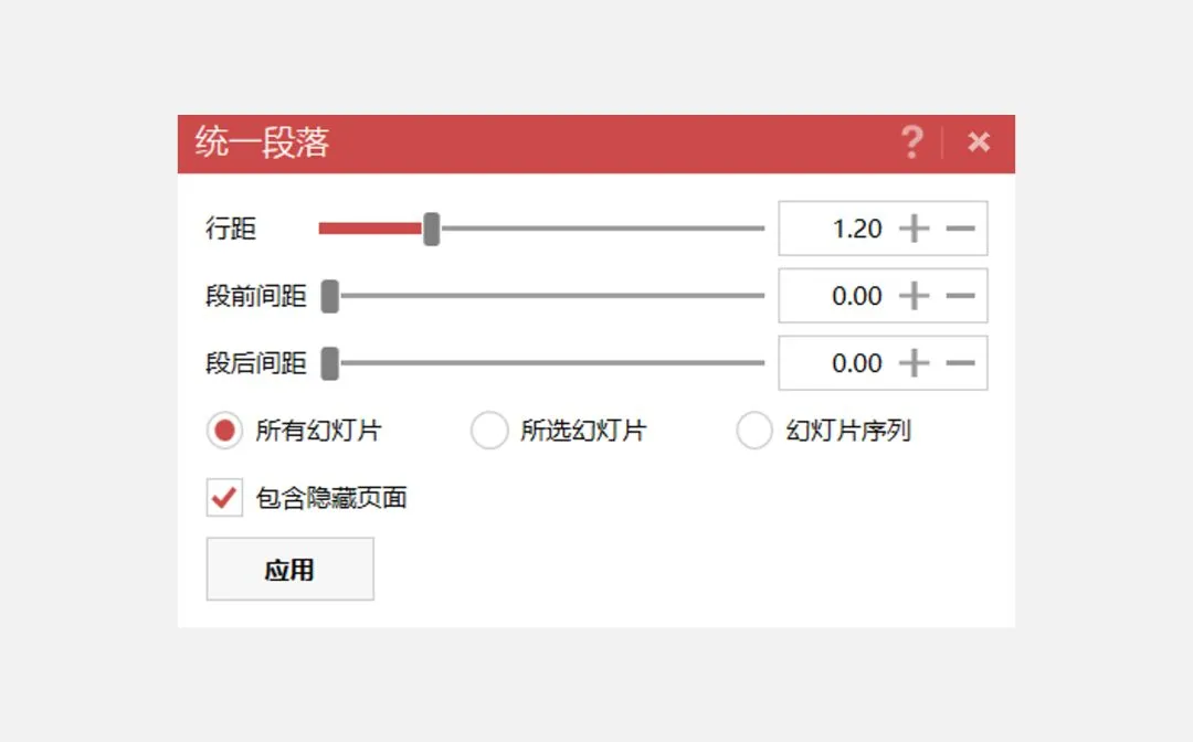 而统一段落格式的话,PPT本身并无法实现,同样需要通过iSlide插件,使用统一段落的功能。