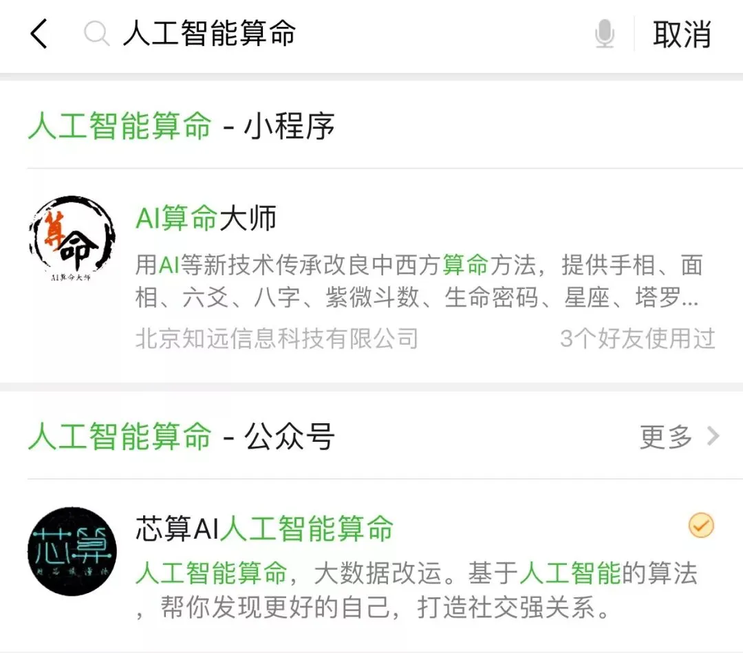 当然,这些我还能理解,不过像最近朋友圈里还有一个特别火的人工智能算命平台,我就不能理解了: