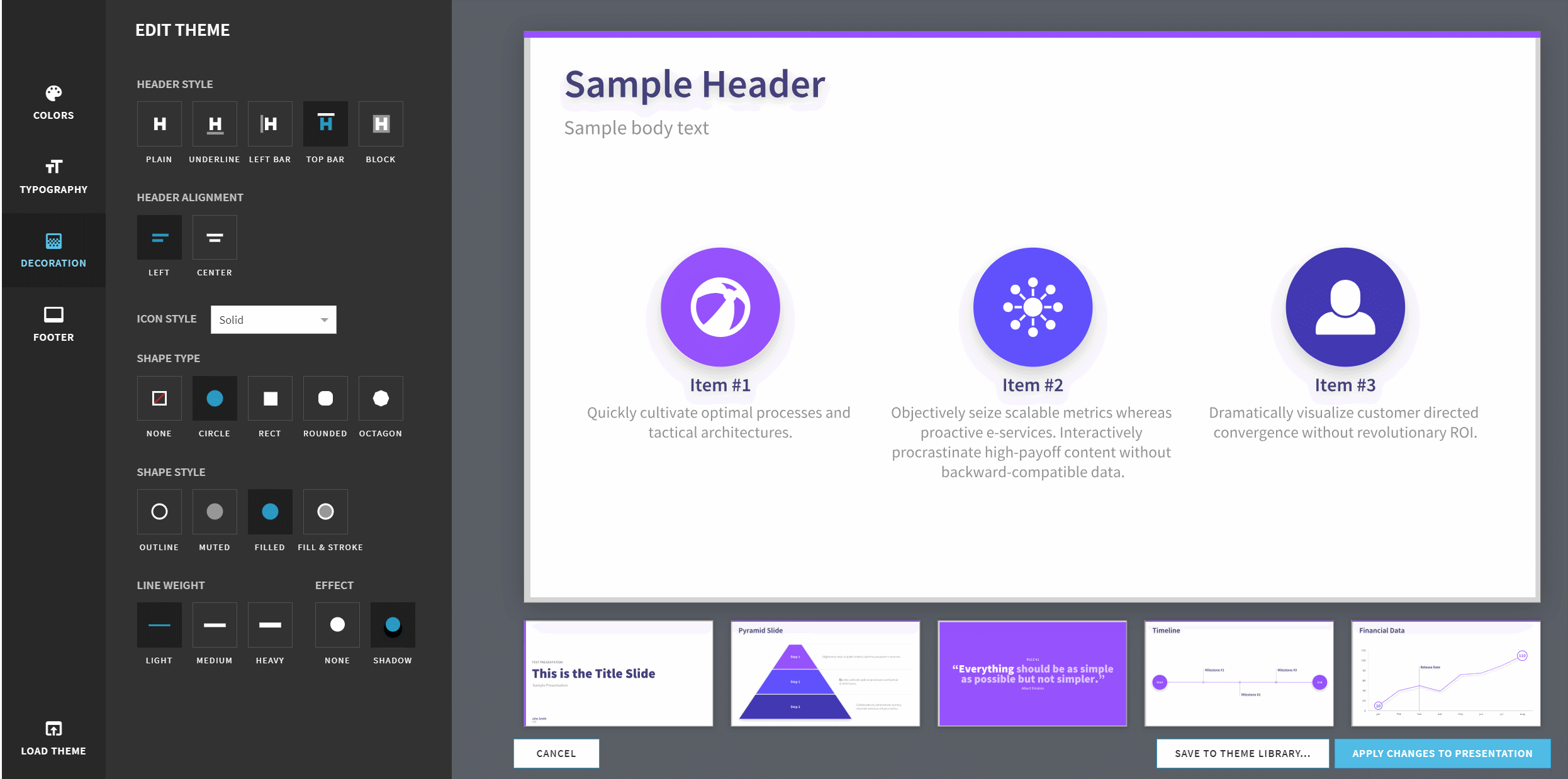 任意选择一种,那么,整套PPT中的元素效果,就会全部发生改变,可以是改色,也可以是添加阴影,调整透明度,改变形状样式等: