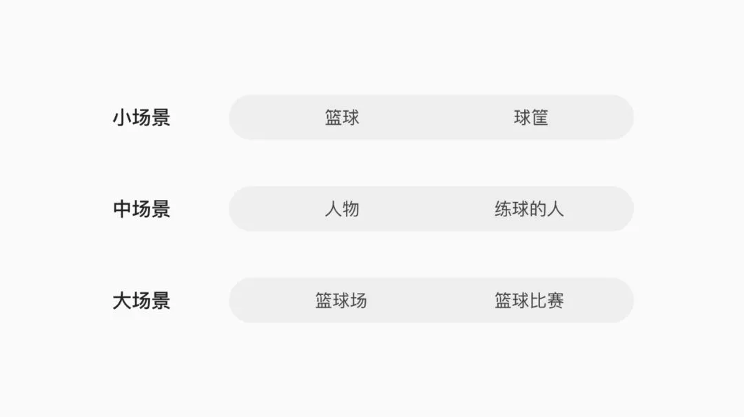 通过上面的文字我们可以知道,这页幻灯片的内容核心是篮球,所以我们可以根据篮球扩展关键词,一般按照从大到小的视角去观察即可:
