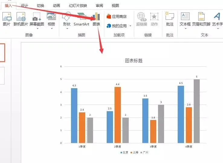 1、在PPT中插入柱形图。
